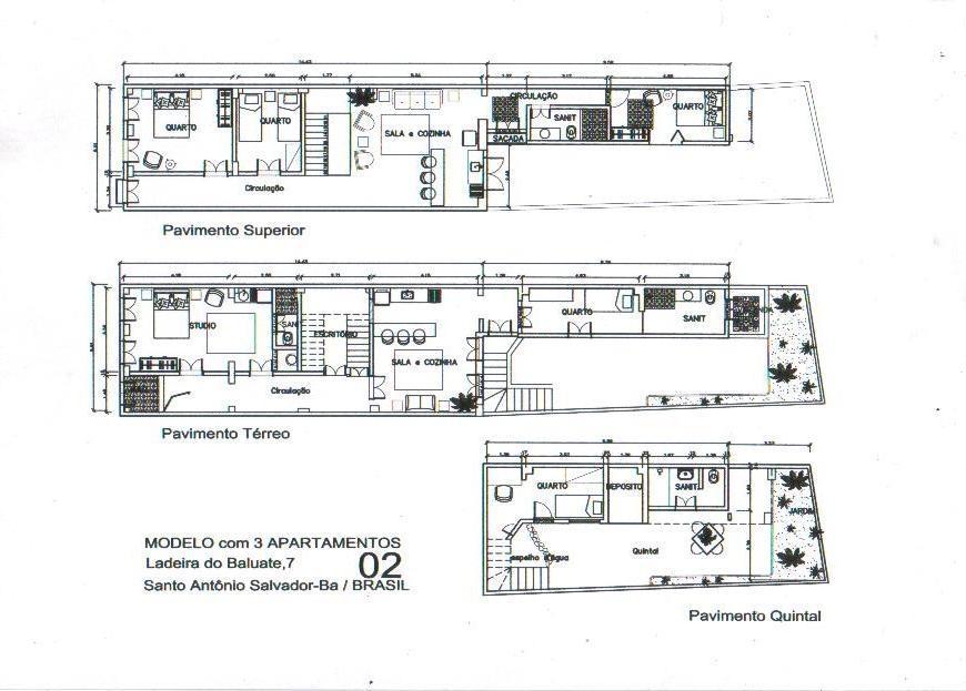 Casarão com 3 pavimentos. TÉRREO, corredor, estúdio, 1° banheiro, escritório, salão e cozinha conjugados, quarto, 2° banheiro. !° ANDAR, 2 quartos, salão e cozinha conjugados, corredor, varanda sobre jardim, 3° banheiro 3° quarto. SUBSOLO, quarto, depósito/despensa, sanitário, JARDIM/QUINTAL murado. Rua tranquila, residencial, maioria dos imóveis são originais e estão em ótimo estado, Há monumentos arquitetônicos importantes como o forte de Santo Antônio, com GALERIA DE ARTE, escolas de CAPOEIRA, sediam vários eventos culturais. IGREJA DO SANTO ANTÔNIO, em ótimo estado e além das missas promove várias ações humanitárias e culturais. (As fotos são de quando a casa estava habitada, está fechada há um tempo, uma limpeza está sendo organizada para que fotos atuais sejam expostas) LARGO DO SANTO ANTÔNIO, local onde acontecem eventos culturais e feiras artísticas pontualmente, rodeado de bares e restaurantes de altíssimo nível, VISTA AO MAR à partir desse Largo é ampla com pôr do sol magnífico. O bairro está repleto de pousadas, hotéis, bares, restaurantes, comércios, casas de artes variadas, galerias de pintura, produtos naturais, vários espaços promovem música ao vivo. Tem outras igrejas históricas além da citada, centros de apoio humanitário Irmã Dulce. Ambiente fino, alegre, em total segurança. Esse casarão tem a vantagem de estar inserido nesse maravilhoso quadro e ao mesmo tempo em uma posição que permite aos moradores total silêncio e privacidade quando desejarem. Ideal para quem deseja morar e trabalhar no mesmo local, pode ser galeria de arte e local de eventos no térreo, ou primeiro andar e caso queiram praticar locação temporada, há possibilidade de adaptar um ou dois andares, perservando total privacidade a todos.